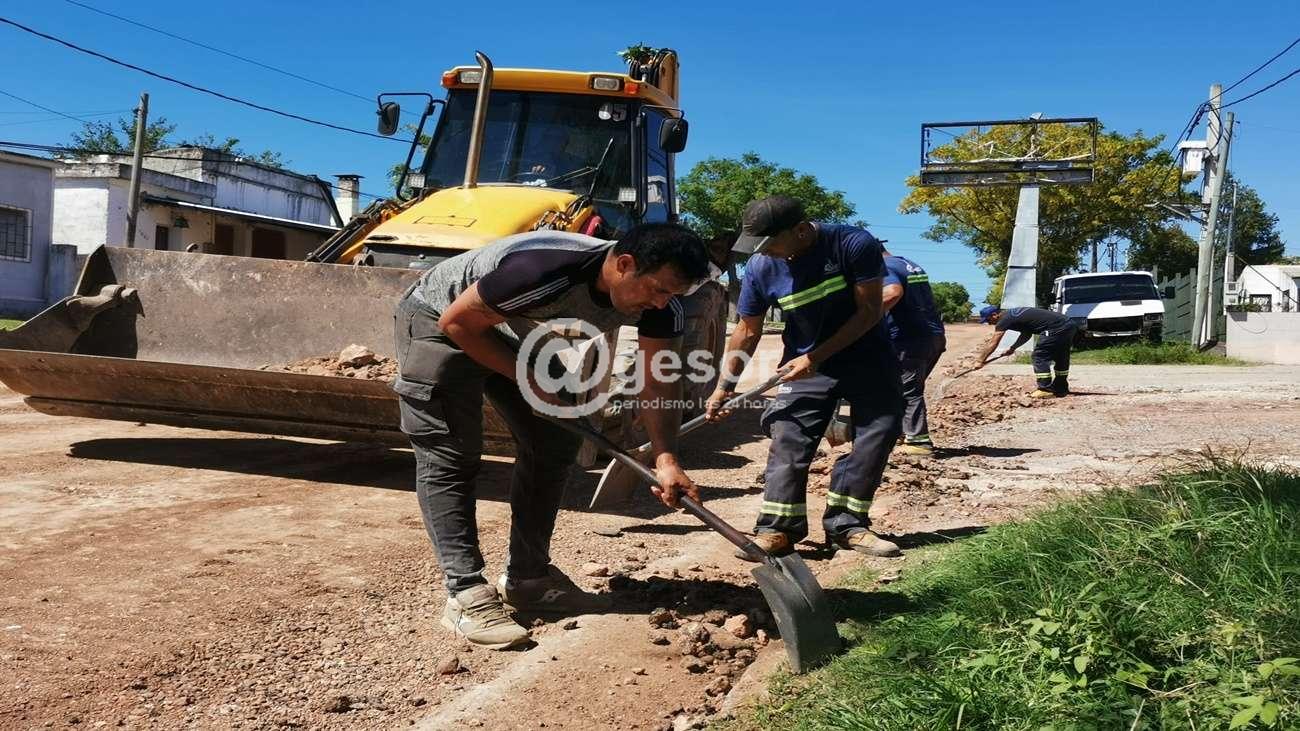 Actualmente se trabaja en calle 18 de Julio, realizando el retiro de la capa bituminosa deteriorada, procediéndose a la recomposición de la base con material granular, para posteriormente aplicar asfalto.