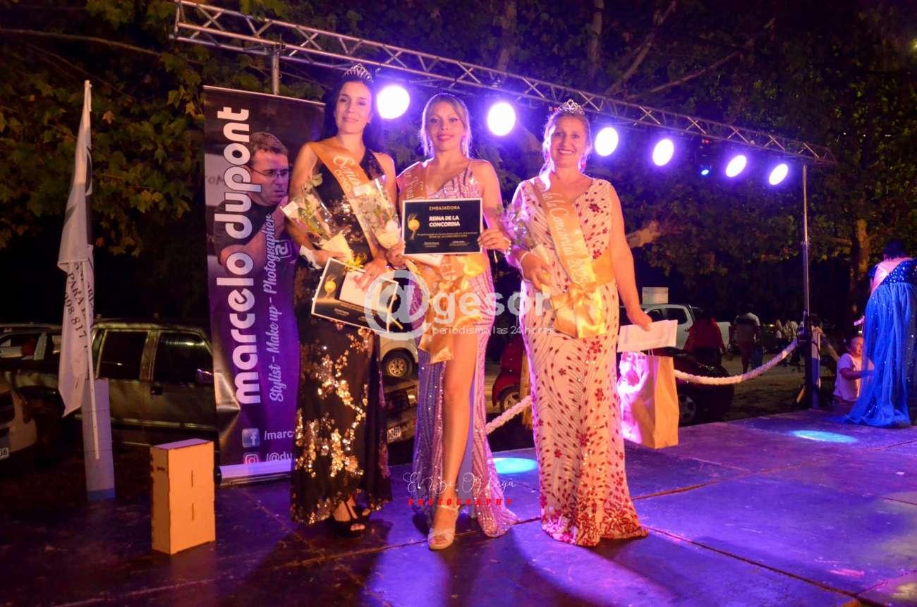 Esa misma noche, con la mejora temporal del clima, el alcalde Adrián Amuz, junto al concejal Luis Bianchi, asistió al evento organizado por el parador Puesta del Sol en el balneario La Concordia, donde se llevó a cabo el esperado desfile de la Reina de La Concordia.