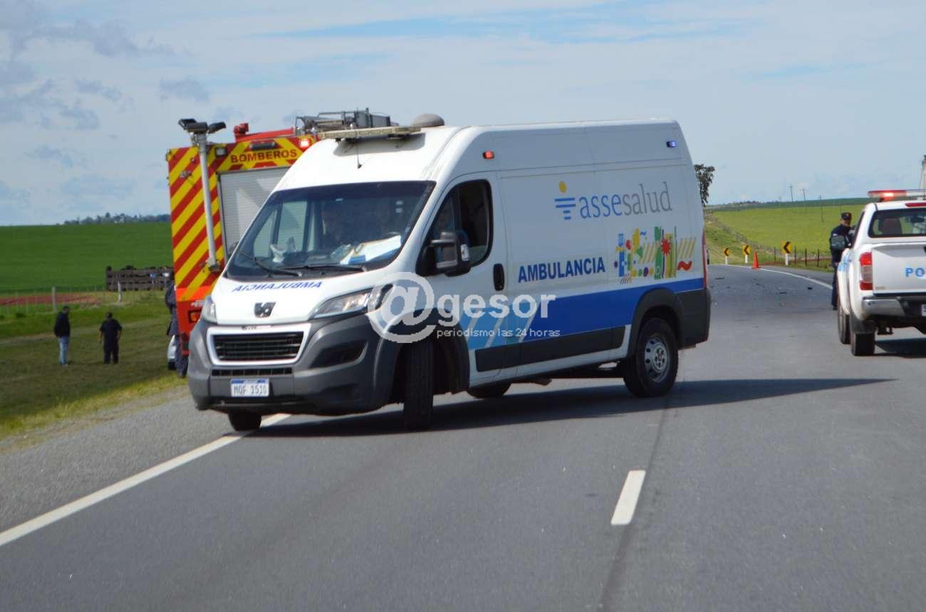 La primera conductora, una mujer de 29 años, indicó que viajaba desde Egaña hacia Fray Bentos, y al tomar una curva perdió el control de su vehículo, chocando de frente contra otro automóvil y perdiendo el conocimiento momentáneamente.