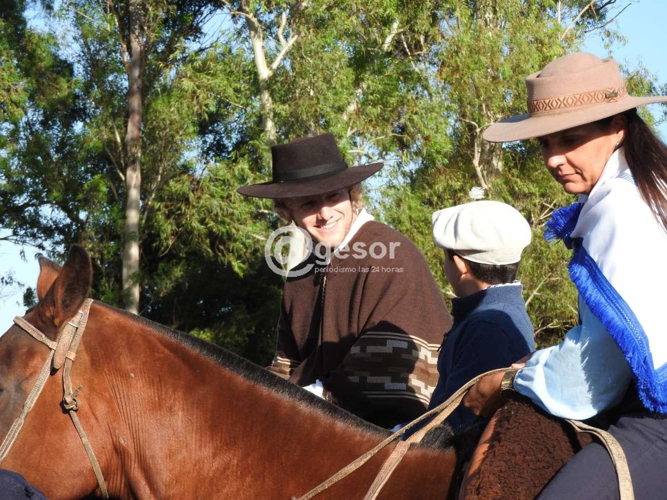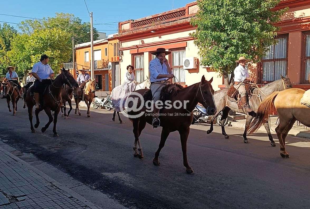 Uno de los momentos más destacados de la jornada llegó con el desfile de caballería, donde García y sus acompañantes se sumaron a la comitiva. Montado a caballo, el candidato recorrió las calles de Dolores, saludando a los vecinos y recibiendo el apoyo de muchos que se acercaban para tomarse una foto o simplemente expresarle su saludo.