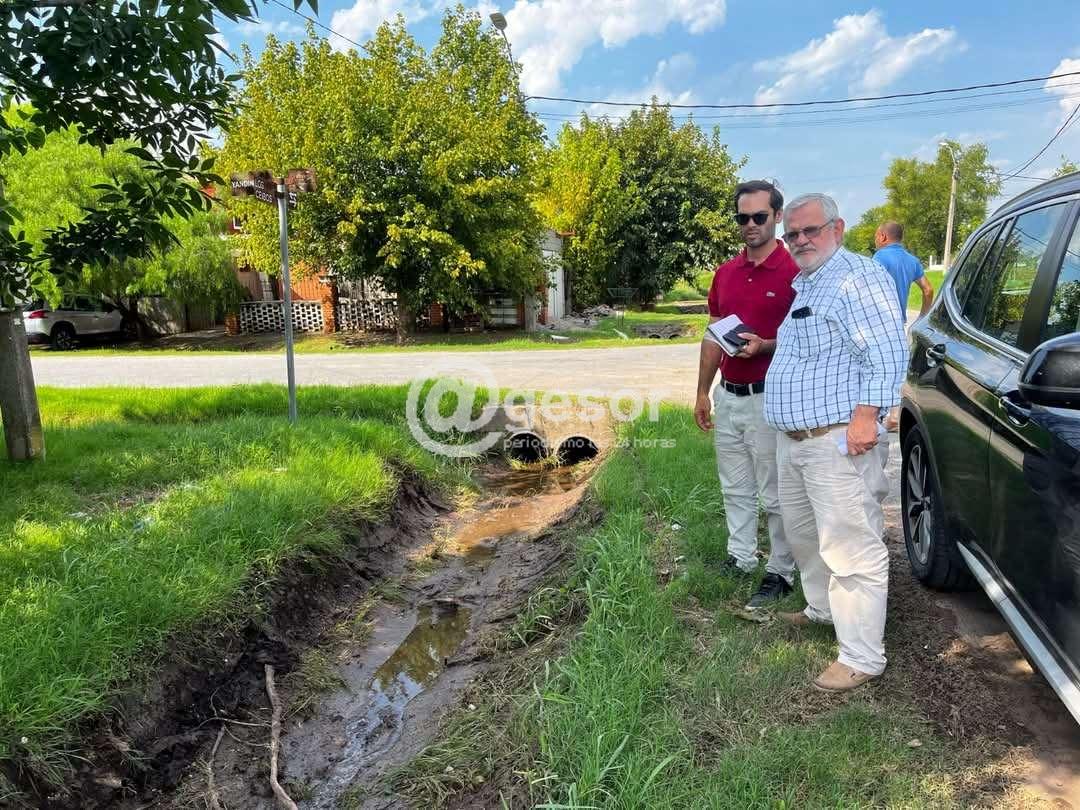 El Sr. Intendente de Soriano, Ruben Valentín,junto al Alcalde Adrián Amuz, acompañados por el Prosecretario de la comuna Gonzalo Castillo y el Edil Luciano Andriolo, supervisaron el inicio de trabajos de limpieza de caños y cunetas en el barrio Altos de Dolores.