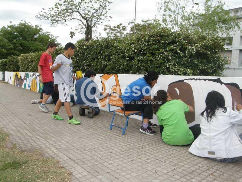 Niños de la Escuela de Música Nº 122 orientados por el artista plástico Alejandro Bonilla comenzaron a decorar los muros de este centro de estudio. La actividad de enmarca en el Encuentro de las emociones y el arte (EmocionARTE) que se realizó en Mercedes entre el jueves y la jornada de este viernes 25 de octubre. Una actividad a la cual también se sumaron algunos maestros, pincel en mano, llenado de color los muros de la Escuela.