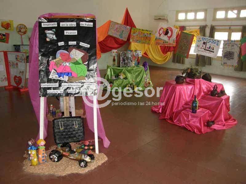 También en salones de la Escuela Nº 122 pudo apreciarse una muestra de diferentes trabajos de alumnos de distintas escuelas del departamento. Desde manualidades con cartón, papel, lanas, madera y otros materiales, hasta cerámica y exposición de libros. Una cálida muestra de las tareas extra curriculares que los escolares realizan.