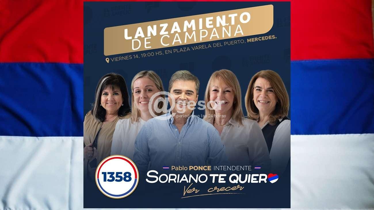 La Amplia - Lista 1358, que tiene como sus principales referentes a la Vicepresidenta de la República, Carolina Cosse, a la Senadora Silvia Nane, a la Diputada María Inés Obaldia y al Ministro de Turismo, Pablo Menoni, y que recientemente recibió la incorporación del candidato a intendente de Soriano, Maestro Pablo Ponce, invitan al lanzamiento de la candidatura de este último, a realizarse este próximo viernes 14 de marzo a las 19 horas, en Plaza Varela, ubicada en el puerto de Mercedes.