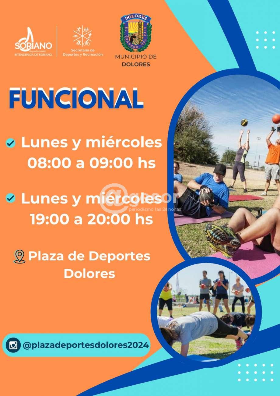- Funcional: lunes y miércoles 8.00 a 9.00 horas y lunes y miércoles 19.00 a 20.00 horas en plaza de deportes