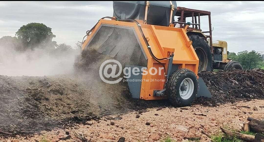Allí se puso en funcionamiento una máquina mezcladora en un sector del predio donde se acopia la materia prima a utilizar para compostaje.