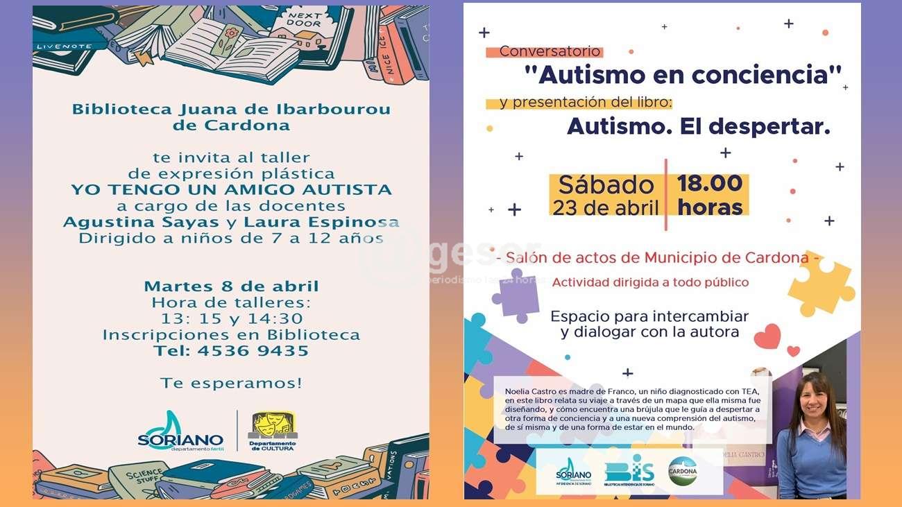 En tanto, el miércoles 23 de abril —fecha en que se conmemora el Día Internacional del Libro— se presentará el libro Autismo: El despertar, de la autora Noelia Castro. La escritora ofrecerá además una charla inclusiva orientada a compartir herramientas, vivencias y conocimientos sobre el Trastorno del Espectro Autista (TEA). El evento tendrá lugar en el Salón de Actos del Municipio de Cardona a las 18:00 horas, con entrada libre. Se invita especialmente a docentes, familias y público en general a participar de este encuentro de intercambio y reflexión.