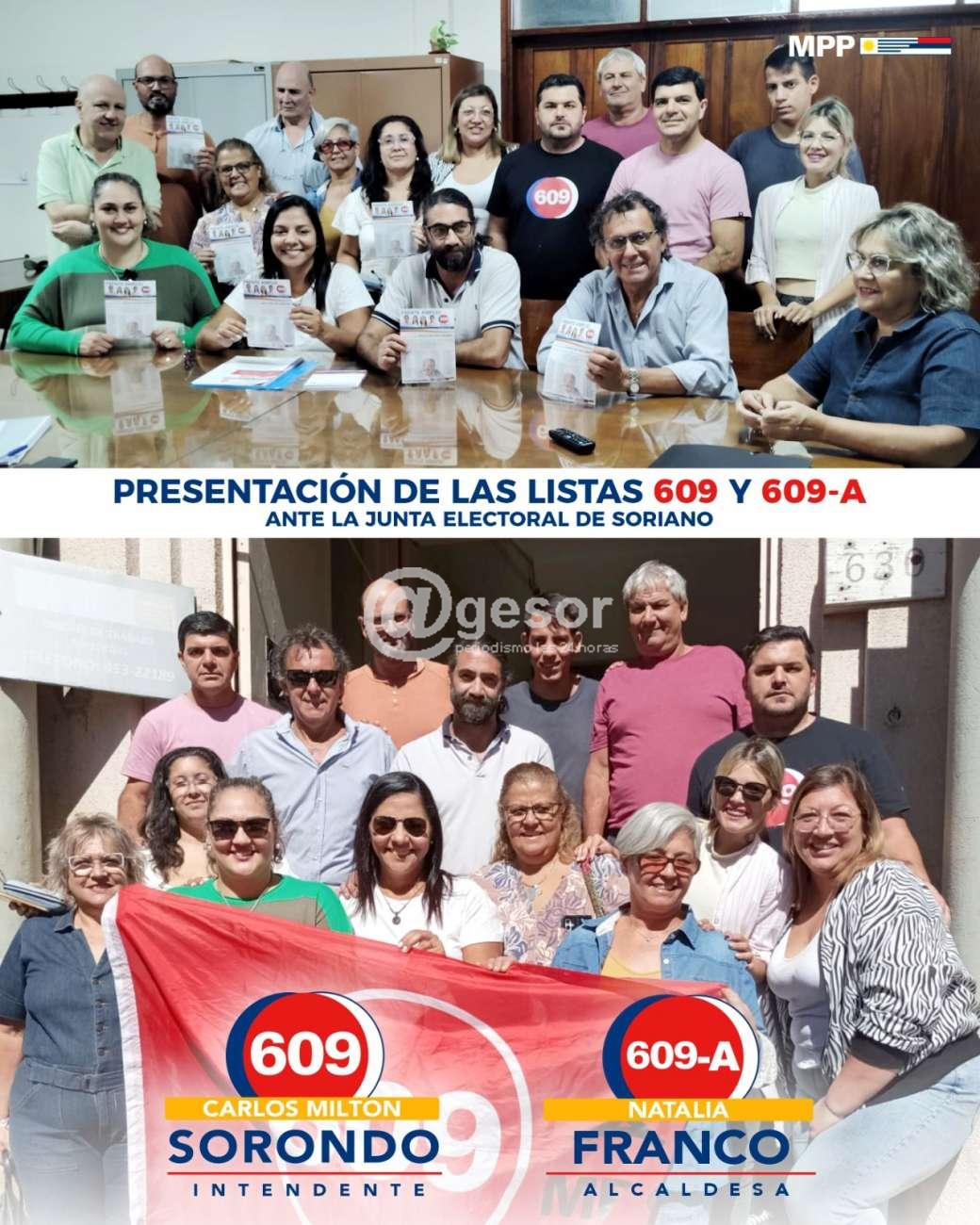 Este jueves, el equipo del MPP Soriano presentó oficialmente las Listas 609 y 609-A ante la Junta Electoral de Soriano, siendo las primeras del Frente Amplio Soriano en registrarse.