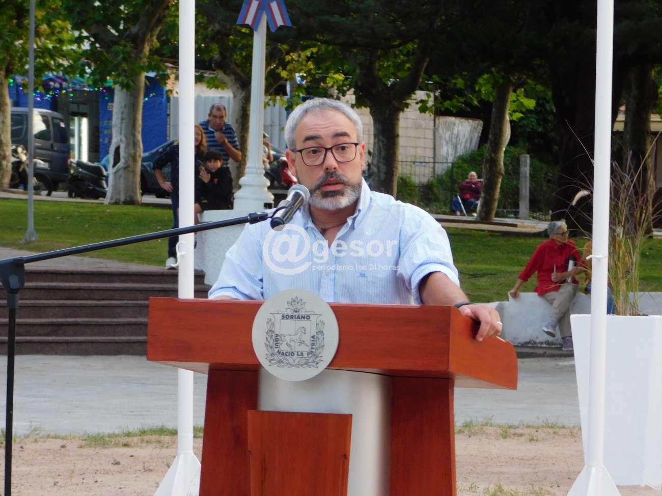 Para que la réplica fuera realmente una réplica y no una imitación y que quedara por decirlo así más o menos, entonces también ahí empezamos a buscar, a hacer consultas, a mirar trabajos, a investigar por ahí y dimos con Federico Gauthier, doloreño, sorianense, que también me acuerdo el día que lo llamé por primera vez, creo que no dudó ni un ratito y me dijo que sí, que se embarcaba en el proyecto y después Federico les va a contar también todo el proceso que tuvimos, entonces todo este relato, toda esta historia que estoy haciendo es para poner un poco la dimensión en que estos cinco años fueron de un proceso continuado, de un proceso que nunca se detuvo, con el horizonte claro de lo que queríamos y con el objetivo de que este nuevo monumento sea resignificado como el anterior, que lo valoremos como el anterior y que lo podamos disfrutar y cuidar como el anterior, así que de mi parte muchas gracias, ahora me va a seguir en la palabra Enzo Perini, también responsable de toda la parte constructiva de este monumento y que también les va a contar un poquito detalles sobre eso".