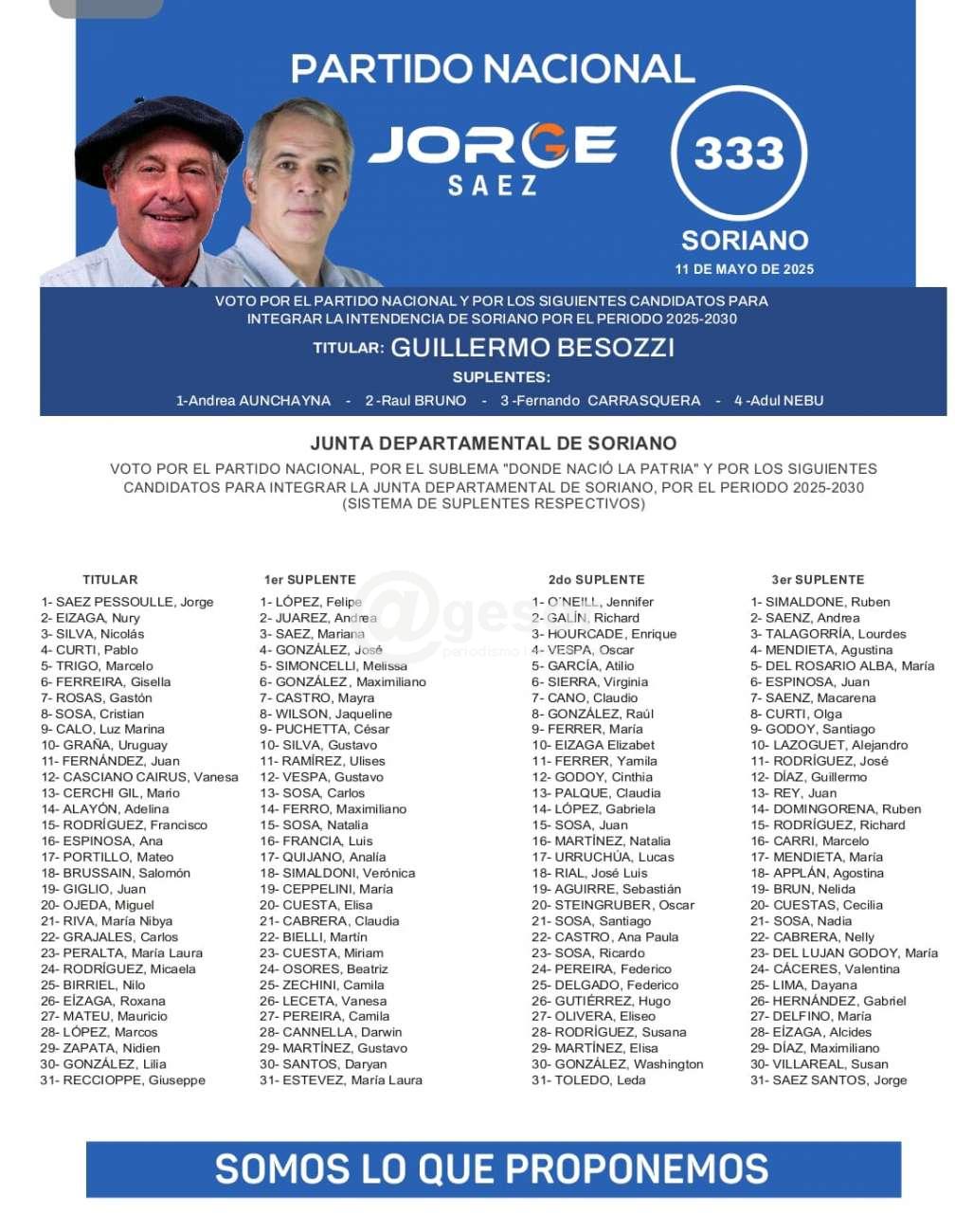 Por eso es la mejor opción para votar a Guillermo es la 333 con Jorge Sáez y su equipo a la Junta Departamental.