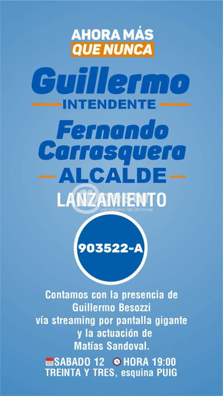 Este sábado 12 de abril en Dolores se realiza el lanzamiento de candidatura a Alcalde de Fernando Carrasquera con el apoyo de Guillermo quien brindará un mensaje vía streaming por pantalla gigante.