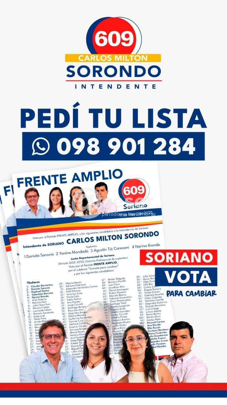 Sumate vos también. Pedí tu Lista 609 al celular 098 901 284 y ayudanos a construir el Soriano que soñamos.