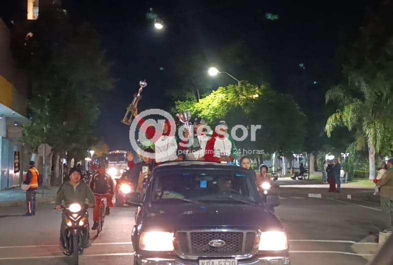 El alcalde Adrián Amuz encabezó una caravana, acompañado por vecinos y vecinas que salieron a las calles para saludar y homenajear a estos jóvenes deportistas que nos representan con tanta pasión y dedicación.