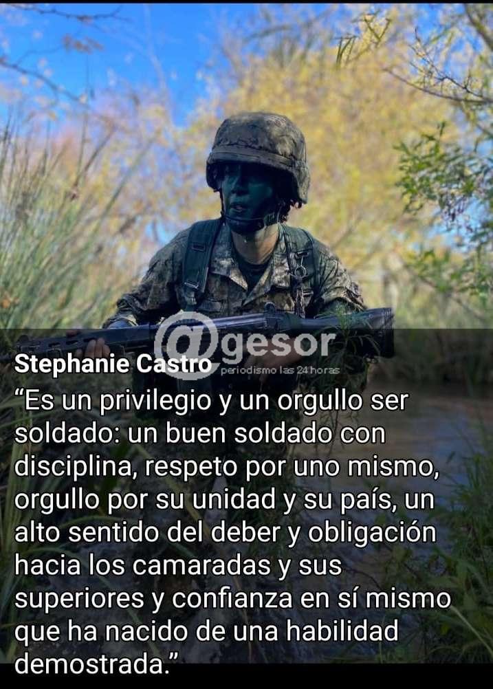 La trayectoria y el compromiso del acabo de segunda Stephanie Castro merece ser reconocidos no sólo por su valentía en el cumplimiento de su misión de paz, sino también por el impacto que su historia tiene en la sociedad, como única mujer de su batallón desplegada en una zona de conflicto. Stephanie ha demostrado una entrega ejemplar, desafiando adversidades y rompiendo barreras en un ámbito tradicionalmente masculino. Su historia no sólo honra el nombre del Batallón Asencio y del Ejército Nacional, sino que también inspira a futuras generaciones de mujeres sorianenses a perseguir sus metas con determinación y coraje.