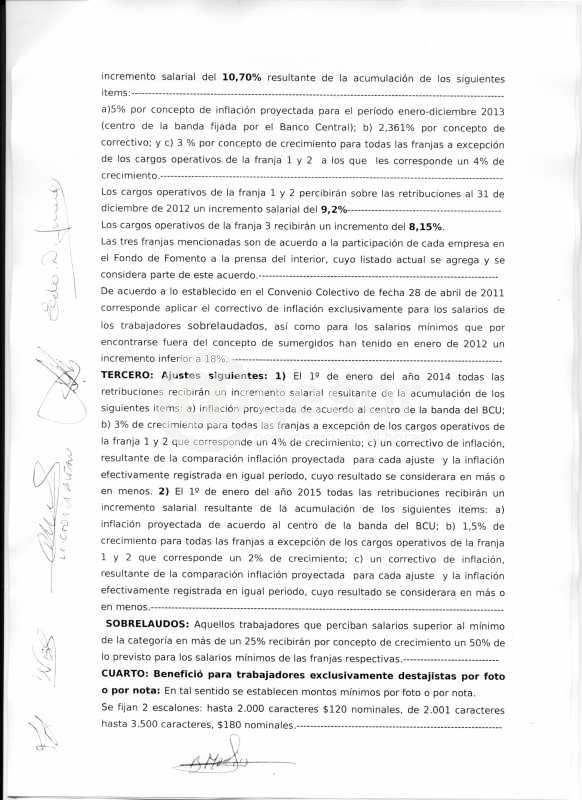 Adjuntamos copia del acuerdo oficial al que se arribó con retroactividad en lo salarial a enero de 2013 y base para las futuras negociaciones.