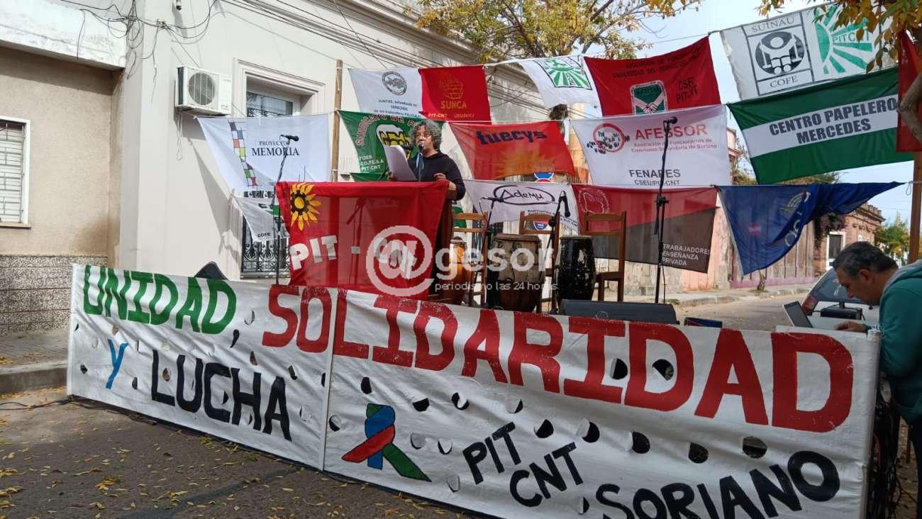 En el marco de la conmemoración del Día de los Trabajadores, en este nuevo 1º de Mayo, el Plenario Intersindical de Soriano realizó su tradicional acto, este año nuevamente se llevó a cabo frente a su sede de Giménez 431 en Mercedes, donde se levantó escenario, en el cual con la presentación de los comunicadores Juan A. Legorburo y Gabriela Ibarra, hicieron uso de la palabra representantes de sindicatos afiliados a la central obrera. También hizo uso de la palabra integrante de la Comisión Memoria, Justicia y contra la Impunidad de Soriano.