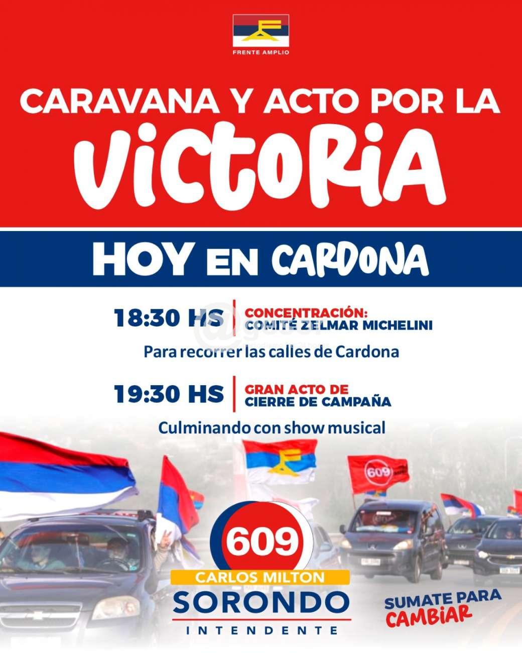A las 18.30 concentración en Comité Zelmar Michelini para recorrer las calles de Cardona; a las 19.30 acto de cierre culminando con show musical