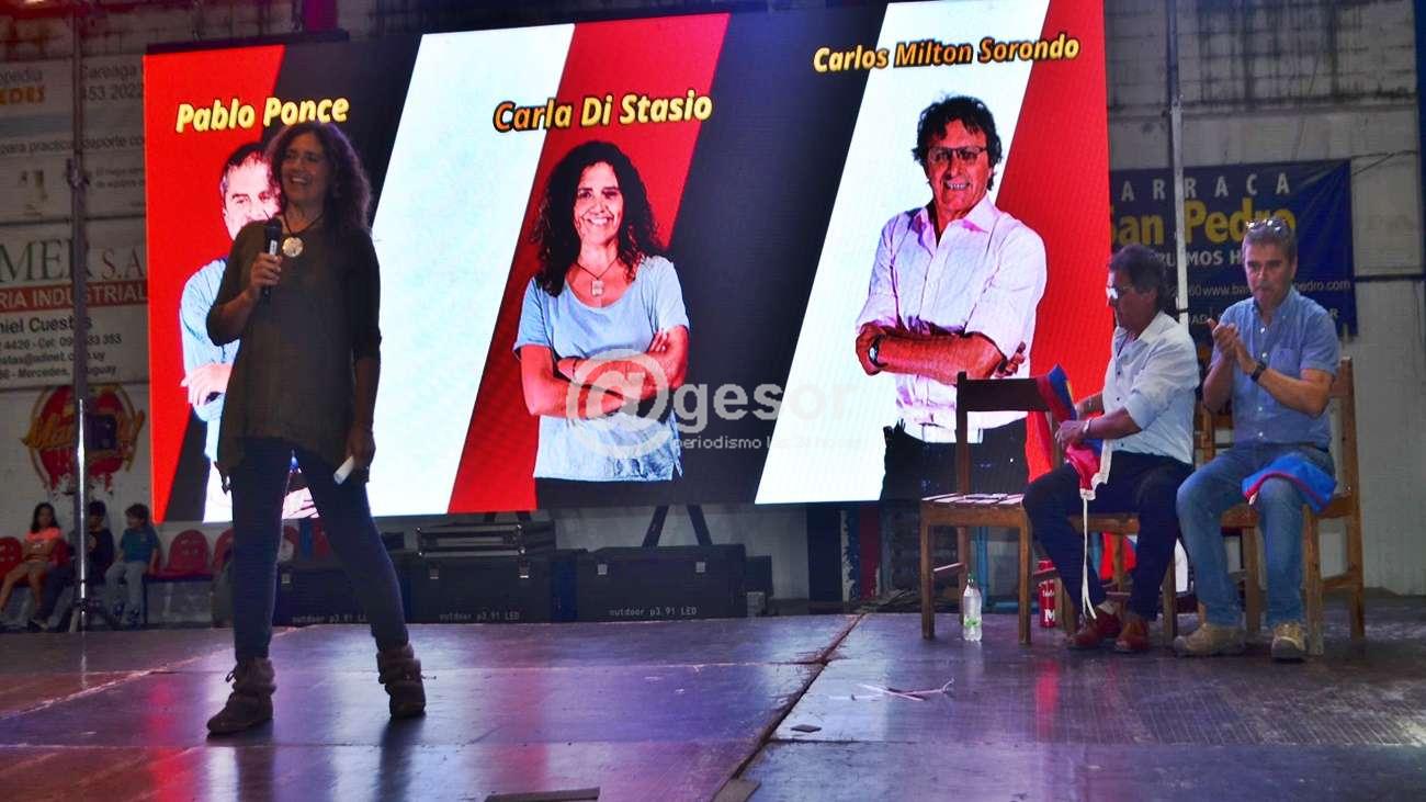 “Hemos hecho los deberes, hemos trabajado, hemos recorrido el departamento y tenemos una gran unidad. Créanme que con mis dos compañeros acá nos sentimos así, unidos, trabajando por un Frente Amplio común, que no todos los partidos políticos se pueden dar eso”  resaltó Carla Di Stasio en la parte inicial de su discurso. En el acto de cierre de campaña del Frente Amplio Soriano, antes de las elecciones municipales, la candidata a intendenta resaltó esa unidad frenteamplista. Al tiempo que criticó algunas afirmaciones del ex intendente Guillermo Besozzi.   “Estuve escuchando algunas declaraciones, voy a empezar por la parte que menos me gusta, pero lo voy a decir al comienzo y después ya nos dedicamos a lo que nos interesa a todos. Estuve escuchando algunas declaraciones del candidato de la 903, donde me parece que se equivoca, donde falta a la verdad. Y acá en el departamento de Soriano tenemos que ser honestos y sinceros. Desde la palabra, desde lo que decimos. Escucho un candidato que dice esto es una entrevista que se hizo en el diario El Observador, donde dice que el Frente Amplio salió comunicado de la nada y dice que habrá más detenidos, falta a la verdad. El Frente Amplio nunca habló de que iba a haber más detenidos. Entonces, cuando alguien se equivoca, le damos la posibilidad de que pueda cambiar lo que ha dicho”.  Leyendo el comunicado emitido por la Mesa Política el 12 de marzo pasado.