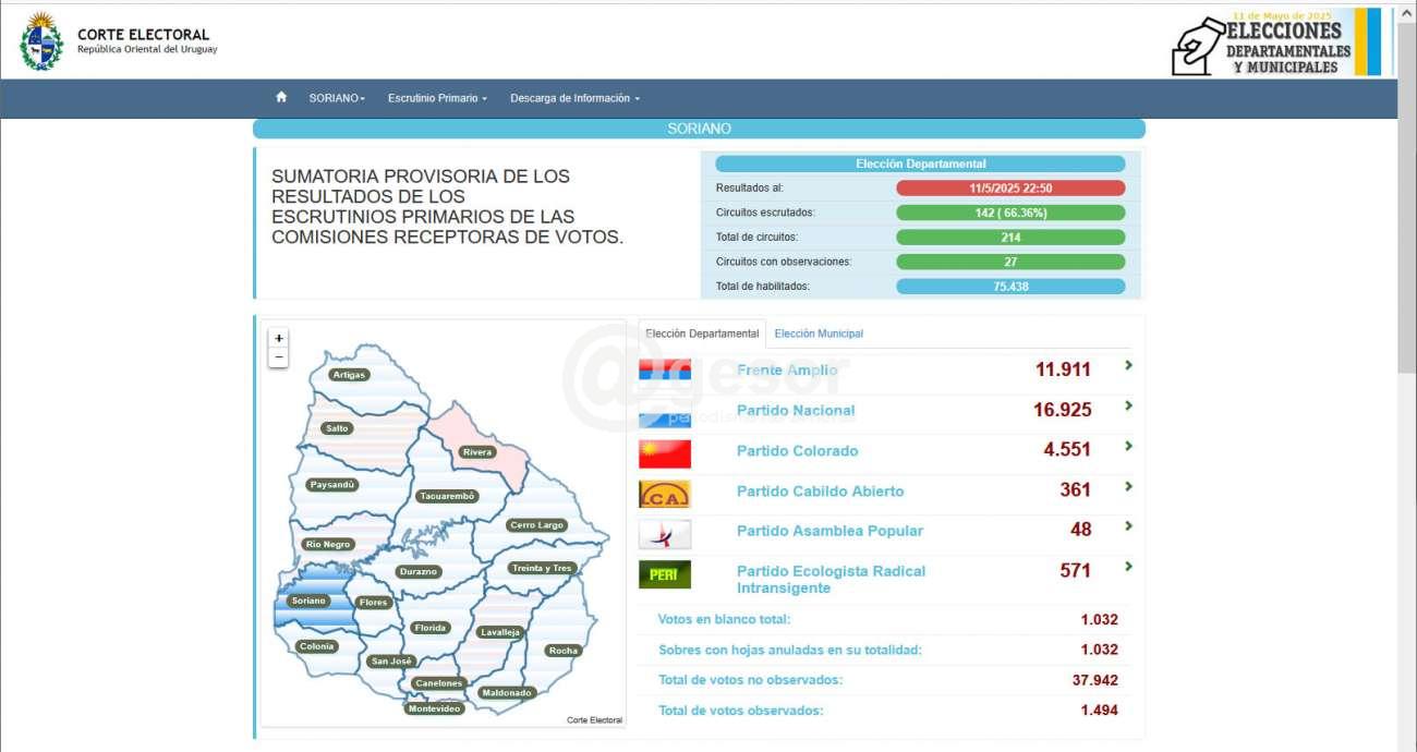 A esto hora con un 66,36% de los votos escrutados Guillermo Besozzi estaría obteniendo su cuarto período al frente de la Intendencia municipal de Soriano, lo que implica un hecho histórico para el departamento como a nivel nacional.