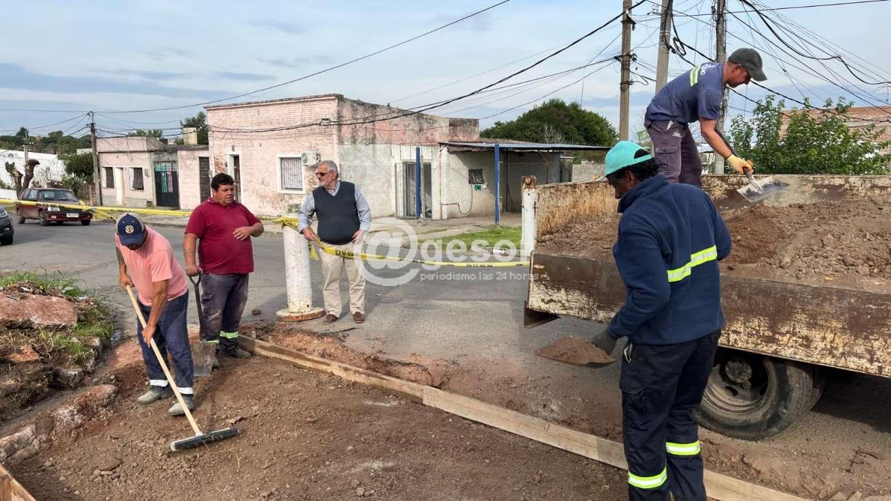 En estos lugares pudo observar los diferentes grados de avance, ya que hay calles que ya están terminadas, otras en las que se realiza el retiro de la capa bituminosa deteriorada y la recomposición de la base con material granular para la aplicación de asfalto con gravilla. También hay zonas donde se reconstruyen badenes y se reparan cordones y platinas.