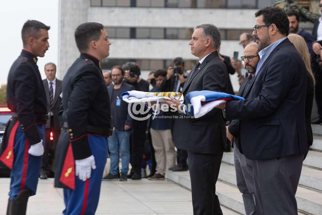 Las autoridades entregaron a Topolansky los pabellones que acompañaron el féretro.