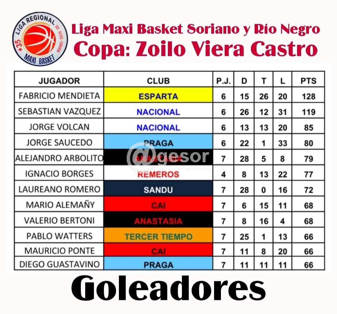 Fabricio Mendieta (Esparta) 128 pts, Sebastián Vázquez (Nacional) 119 pts, Jorge Volcan (Nacional) 85 pts, Jorge Saucedo (Praga) 80 pts y Alejandro Arbolito (Anastasia) 79 pts.