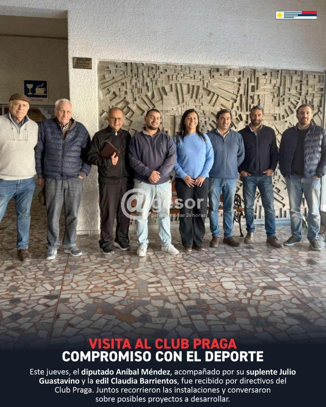 El jueves, junto a su suplente Julio Guastavino y la edil Claudia Barrientos, el diputado visitó el Club Praga. Fueron recibidos por sus directivos, con quienes conversaron sobre posibles proyectos a futuro y recorrieron las instalaciones.