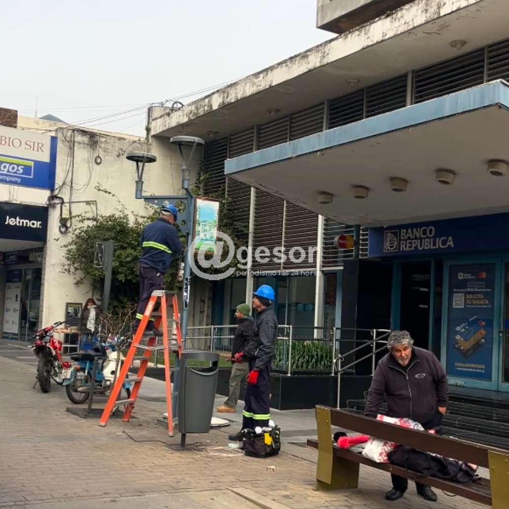 Los trabajos llevados adelante por parte del personal de la Sección Iluminación dependiente del Dpto. de Arquitectura, pasan por el retiro de las luminarias a cambiar, la revisión del cableado y el correspondiente equipamiento eléctrico del sistema lumínico de la semipeatonal. En la medida que se avanza con este procedimiento, se van instalando las nuevas luminarias, habiendo comenzado por calle De Castro y Careaga, frente a la catedral de Nuestra Sra. de las Mercedes, continuando por calle Colón, desde Careaga hacia el sur.