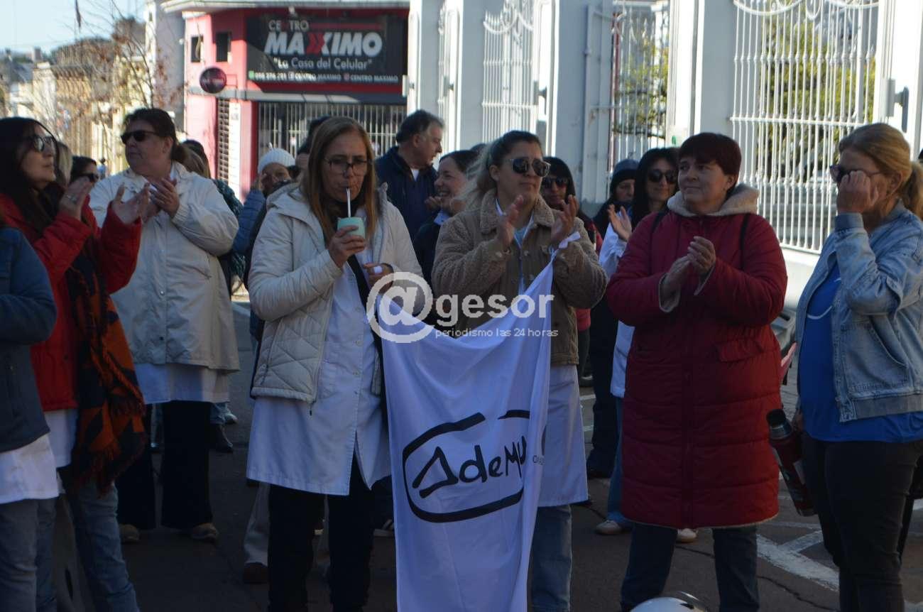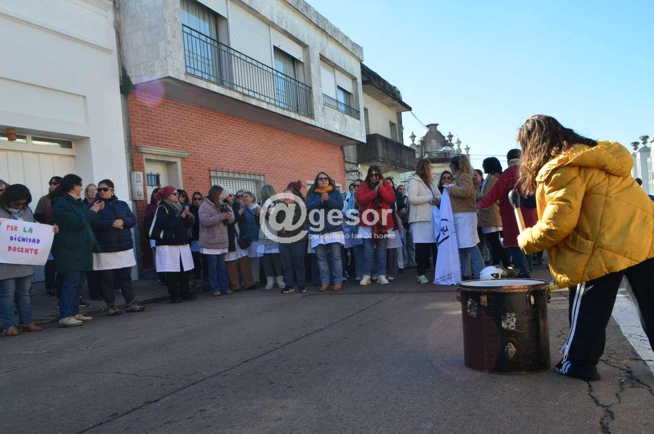 Maestros se Soriano nucleados en ADEMU realizaron un paro de 24 horas y se manifestaron frente a la Inspección de Escuelas, en Mercedes exponiendo la situación que atraviesan. Con carteles que expresaban “Por la dignidad docente”, “No a la imposición, sí al diálogo” un grupo de maestras mercedarias se congregaron frente a las oficinas de la Inspección Departamental de Escuelas para expresar sus críticas las situaciones de violencia que han venido sufriendo en diversas escuelas del departamento, en situaciones que según expresaron generan frustración y enojo.