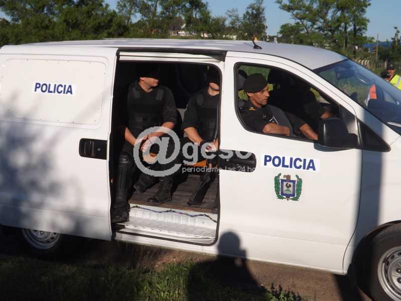 La Policía de Mercedes extrema medidas de seguridad en los alrededores de la casa de un inspector de tránsito, ubicada en el Barrio Esperanza, con un operativo especial instrumentado en los accesos al barrio por calle Oribe.
