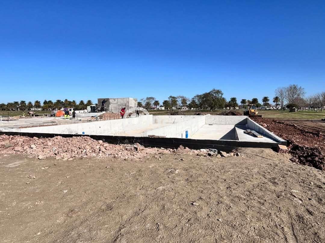 Un importante grado de avance muestran los trabajos de construcción de la piscina pública en Palmitas, donde ya se conformó con hormigón la estructura de la pileta.