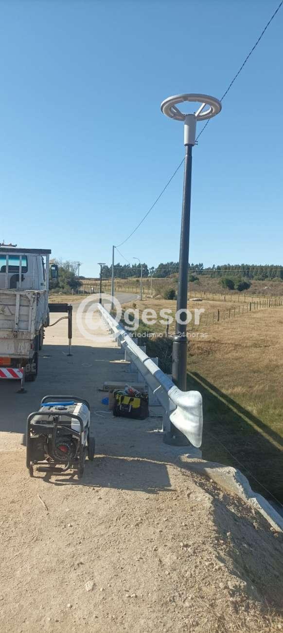 Personal de la Sección Iluminación trabajó en pueblo Lares realizando el tendido de unos 100 m. de líneas para la alimentación eléctrica colocando 2 focos LED de 68 watts. También se instalaron luminarias decorativas de 60 watts en cada cabecera del puente que conecta con Perseverano, agregando 3 focos con luminarias autónomas que funcionan con energía solar en el camino.