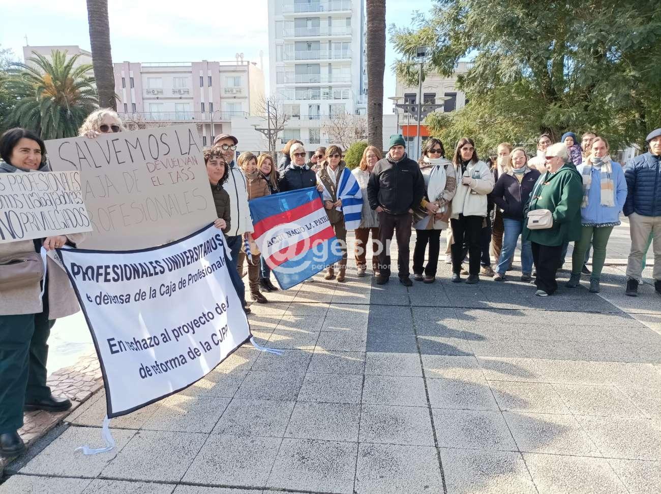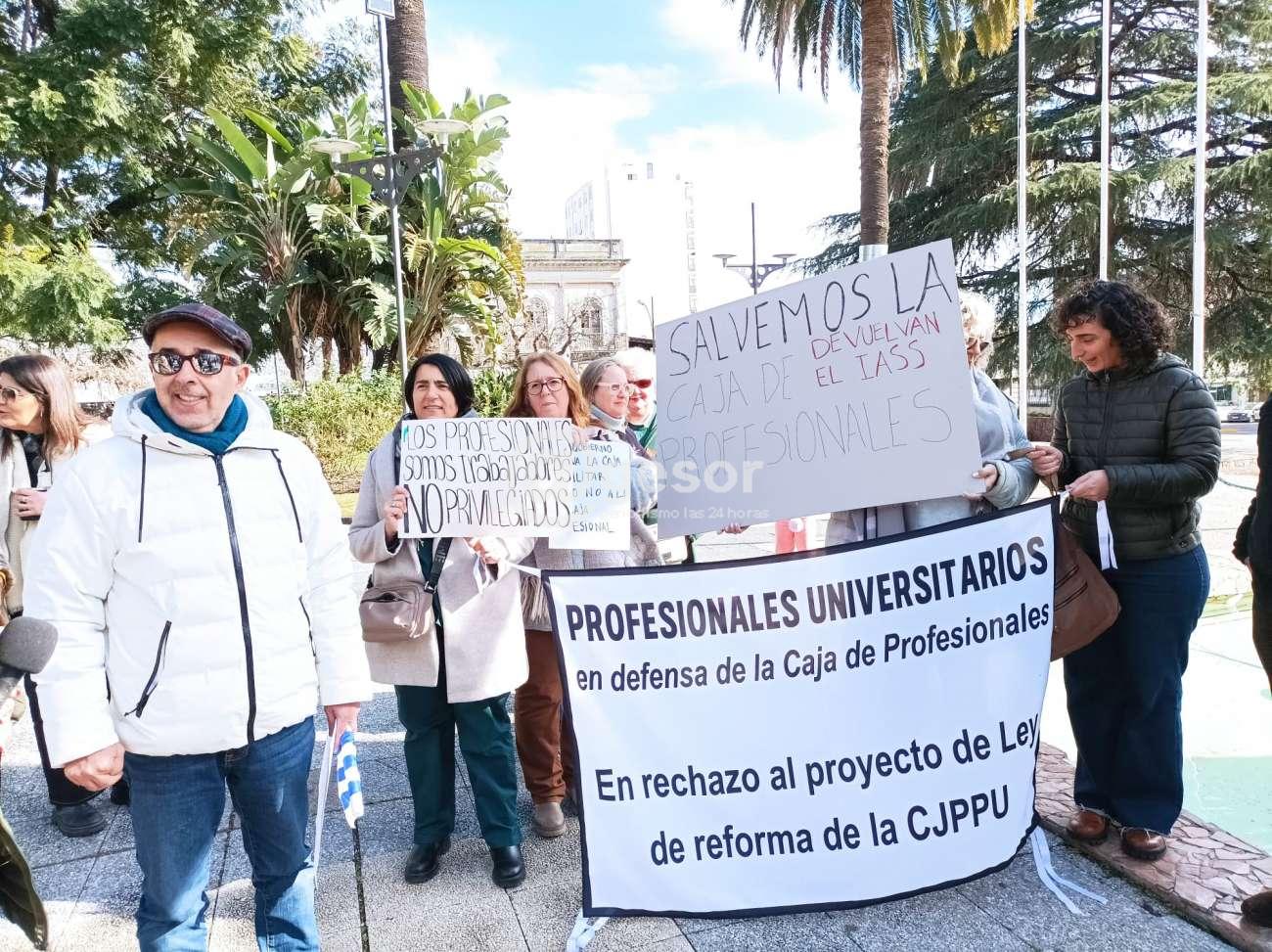 El integrante de un grupo de profesionales de Soriano, odontólogo Dr. Conrado Saizar, fue el encargado de dar a conocer en plaza Independencia de Mercedes, la proclama que se leería por parte de quienes se harían presentes en el Parlamento durante la votación de la Ley de salvataje a la Caja de Jubilaciones y Pensiones de Profesionales Universitarios.