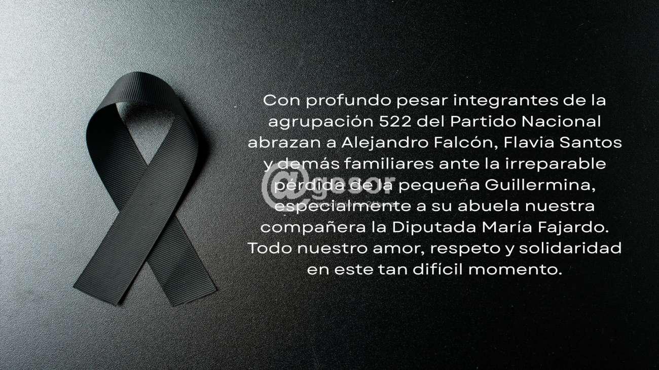Con profundo pesar integrantes de la agrupación 522 del Partido Nacional abrazan a Alejandro Falcón, Flavia Santos y demás familiares ante la irreparable pérdida de la pequeña Guillermina, especialmente a su abuela nuestra compañera la Diputada María Fajardo.