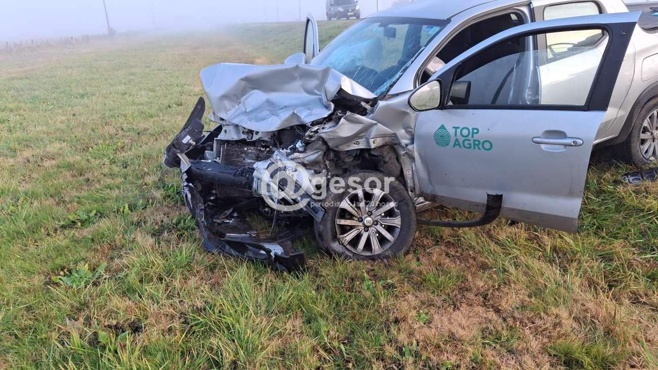 Dos camionetas protagonizaron un siniestro de tránsito en la mañana de hoy a la altura de la entrada a Palmitas. El siniesto, que involucró a vehículos que circulaban en sentido contrario, se presume que fue causado por la espesa niebla que afectaba la zona y que aún persiste en la ruta. La Policía Caminera recomienda transitar con precaución.