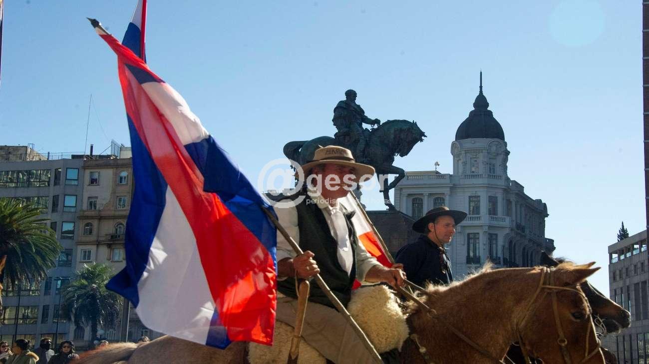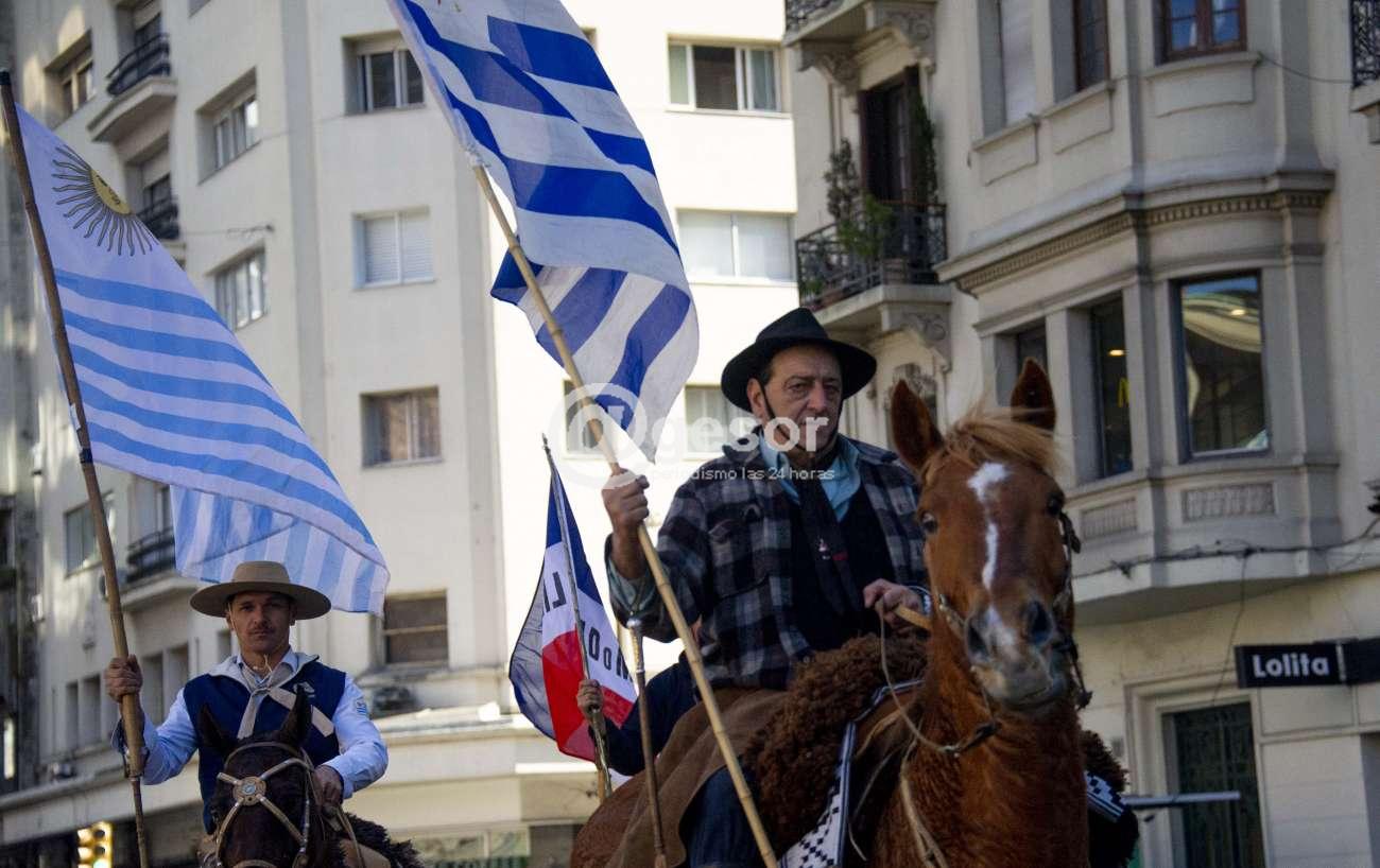 El desfile fue encabezado por los abanderados del pabellón nacional, la bandera de Artigas, la de los Treinta y Tres Orientales la y de la Unión de Aparcerías y Sociedades Tradicionalistas del Uruguay (Uastu).