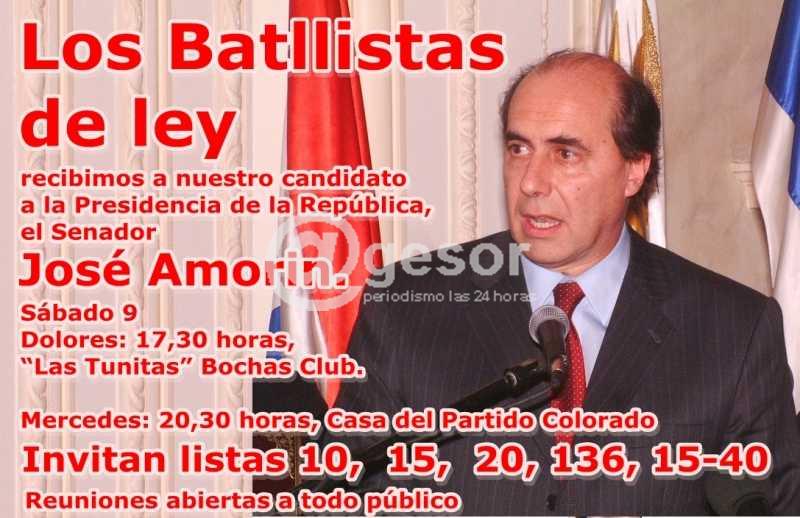 Los Batllistas de ley recibimos a nuestro candidato a la Presidencia de la República, el Senador José Amorin.