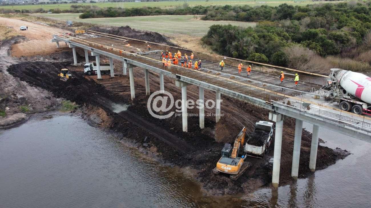 Paralelamente, las obras de construcción del puente avanzan a ritmo sostenido, por lo que se estima que en breve se inicien los trabajos en la caminería que conecte con dicha infraestructura erigida sobre el río San salvador en el lugar conocido como Paso de la Arena.