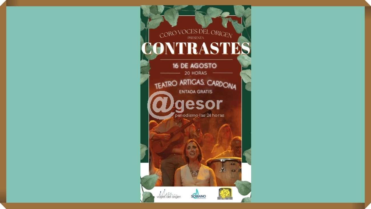 El próximo sábado 16 de agosto, a las 20 horas, el teatro Artigas de Cardona será escenario de un espectáculo coral de primer nivel con la presentación de “Contrastes”, a cargo del coro Voces del Origen. La propuesta reunirá un variado repertorio que combina estilos, ritmos y matices, interpretados por un elenco de voces que se ha destacado por su calidad artística y calidez interpretativa.