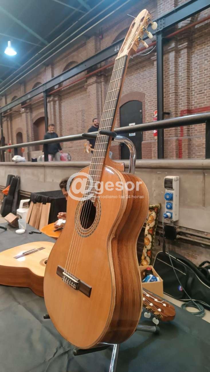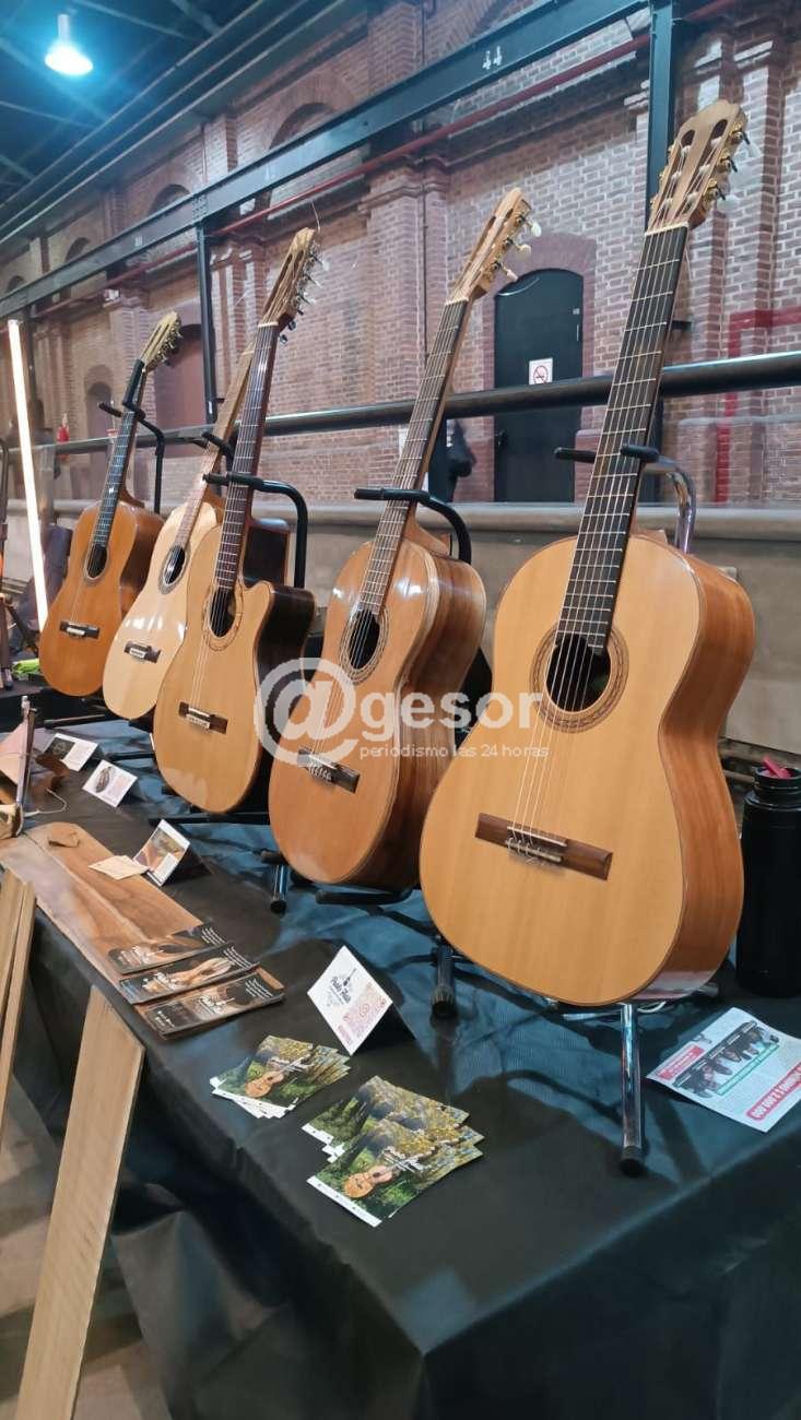 Adib llevó dos guitarras de cuerdas de nylon, especialidad en la que centra su producción. Una de ellas, construida en caoba de Honduras y pino abeto, seguía el plano Hauser de 1937. La otra, en acacia negra con plano Fleta, representaba una apuesta innovadora: se trata de una madera que ha comenzado a utilizarse en Uruguay para la construcción de instrumentos, aunque aún resulta poco conocida en Argentina. “Queríamos mostrar la acacia negra como alternativa local. Mucha gente se acercó a preguntar y se sorprendía al escucharla. Fue un gran interés”, relató.