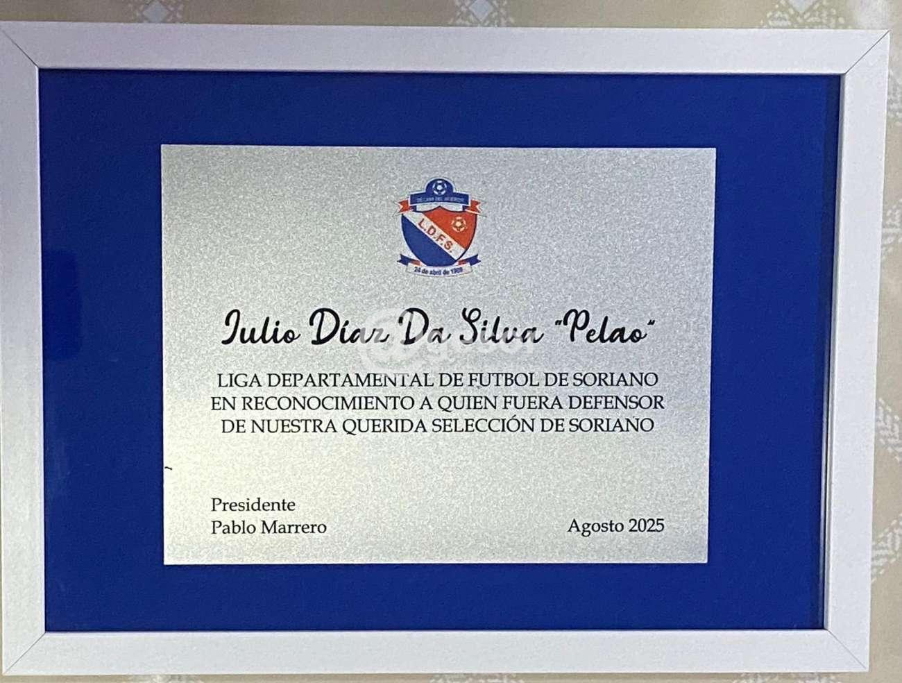La Liga de Fútbol de Soriano, a través de representantes del club Olímpico hizo entrega de la plaqueta en reconocimiento a Julio Díaz da Silva, por su entrega a nuestra selección de Soriano que supo defender y su constante apoyo al fútbol local.