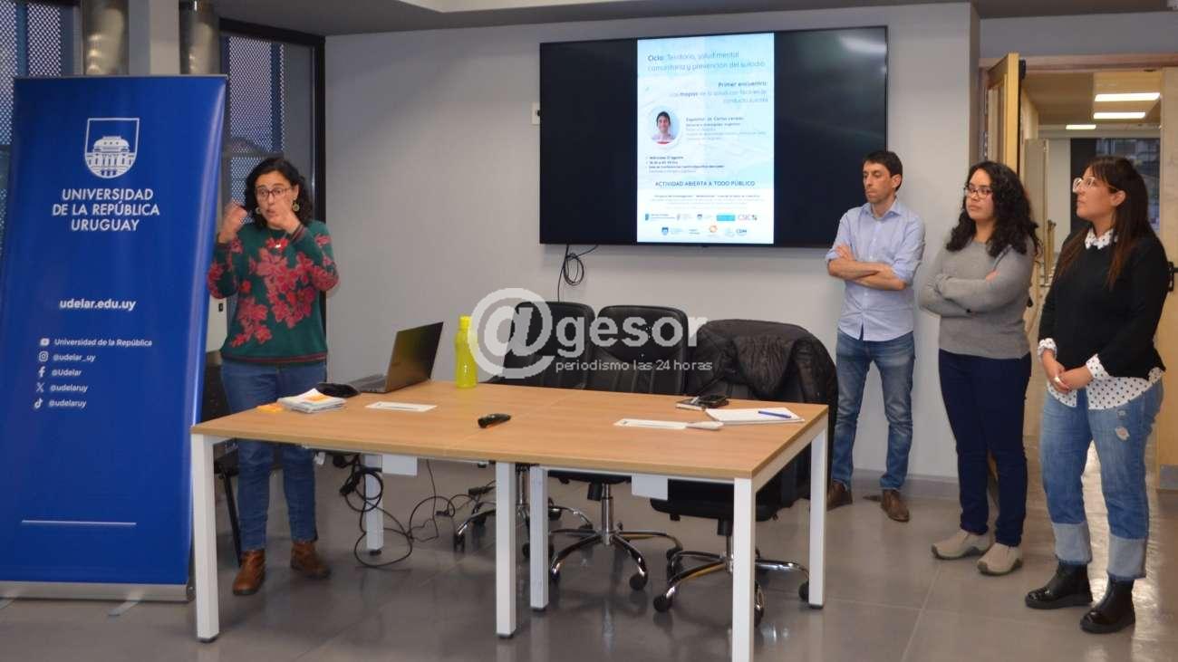En la sala de conferencias del Centro Deportivo Mercedes se realizó la charla sobre Territorio, salud mental comunitaria y prevención del suicidio, a cargo del Dr. Carlos Leveau. Esta actividad fue organizada por la Universidad de la República, región Suroeste, en el marco del proyecto de investigación “Malestamos” cuando el dolor es colectivo, sobre las capacidades locales para la promoción de la salud mental a nivel comunitario, y para la prevención de la conducta suicida en la población joven de Colonia, Soriano y Río Negro.