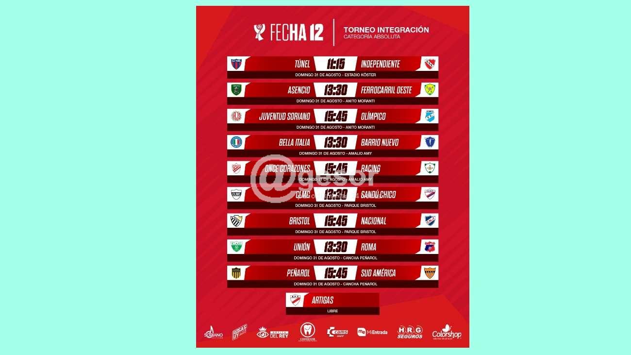 Sobre la fecha 12 comienza en el Köster el domingo, desde las 11,15 horas con el gran partido entre Túnel e Independiente, mientras que en el Moranti juegan desde 13,30 horas juegan Asencio y Ferrocarril.