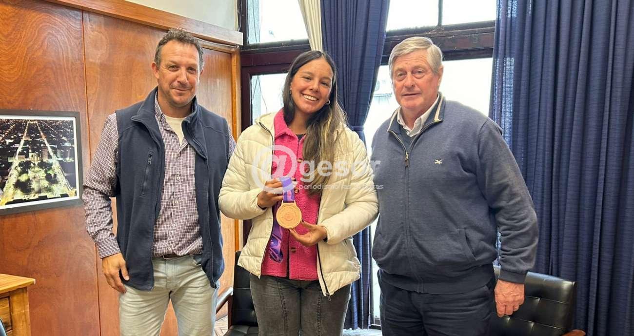 La agenda del jefe del gobierno departamental incluyó también una audiencia en la que fue recibida la deportista Cloe Callorda, quien recientemente obtuviera medalla de bronce en remo, en los Panamericanos Juniors de Asunción.