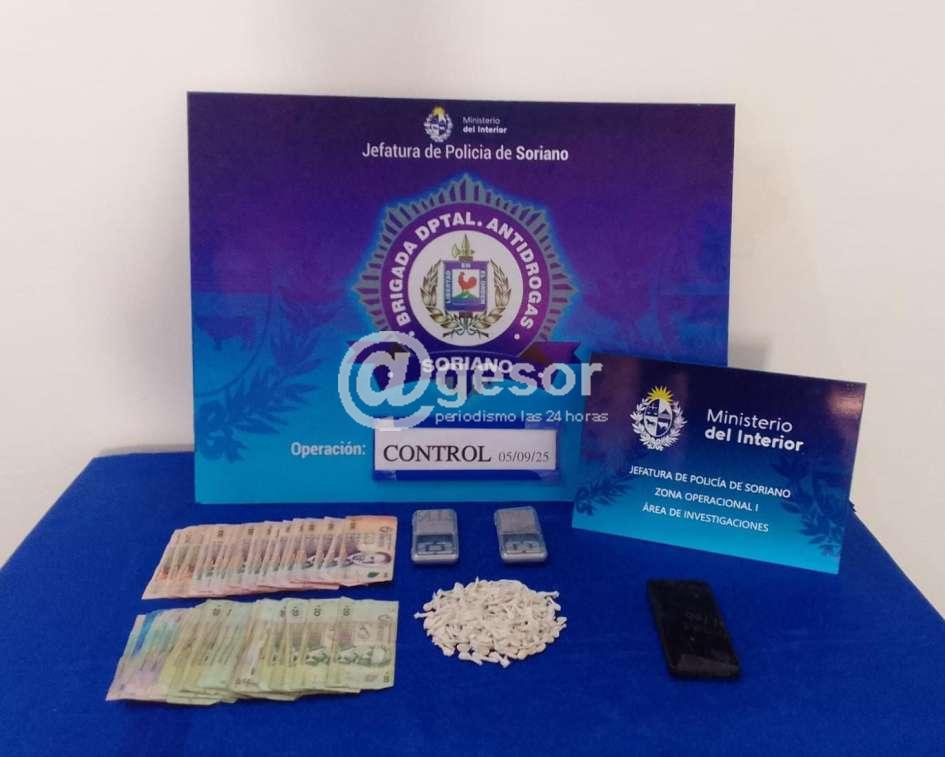 En horas de la noche del 5 de septiembre de 2025, próximo a las 20:50, personal del Área de Investigaciones Zona I, durante recorrida preventiva en inmediaciones de calles Don Bosco y Cassinoni en la ciudad de Mercedes, procedió a controlar a un hombre de 33 años y a una mujer de 32 años que circulaban por la zona.