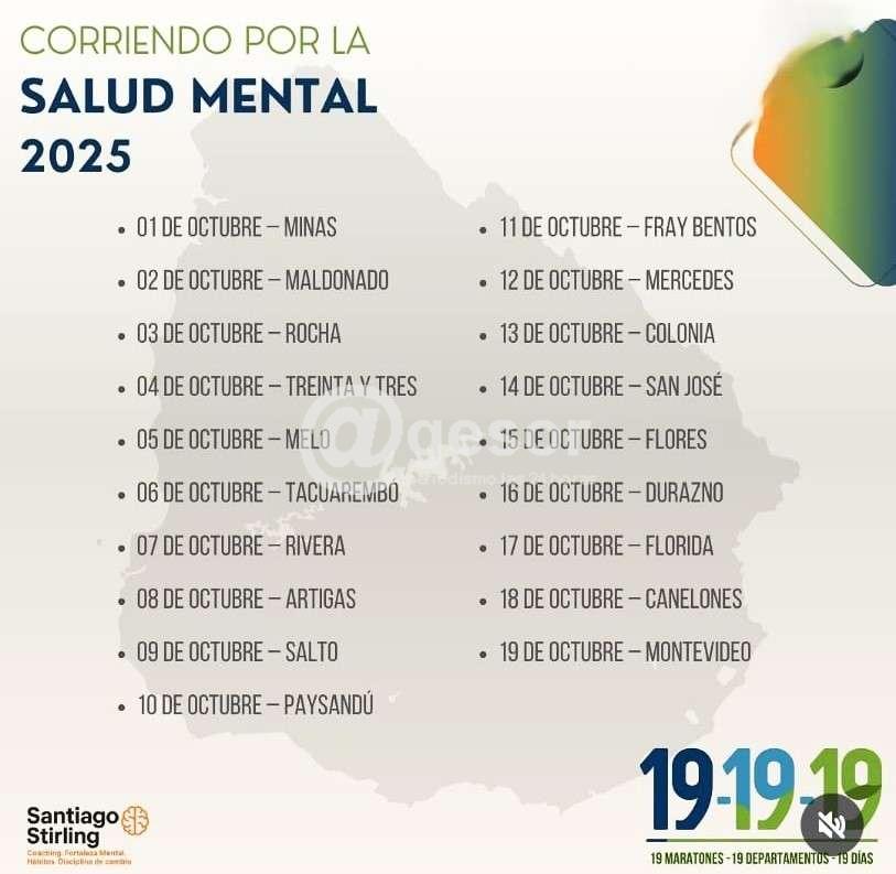Con la organización de Santiago Stirling durante los primeros 19 días de octubre se llevarán a cabo 19 carreras en los 19 departamentos, "Por la salud mental".