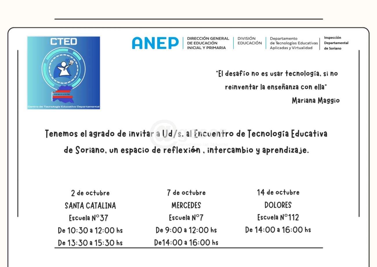 El evento, organizado por el Centro de Tecnología Educativa Departamental (CTED) junto al DTEAV e Inspección Departamental de Educación Inicial y Primaria, se desarrollará en octubre en distintas sedes: