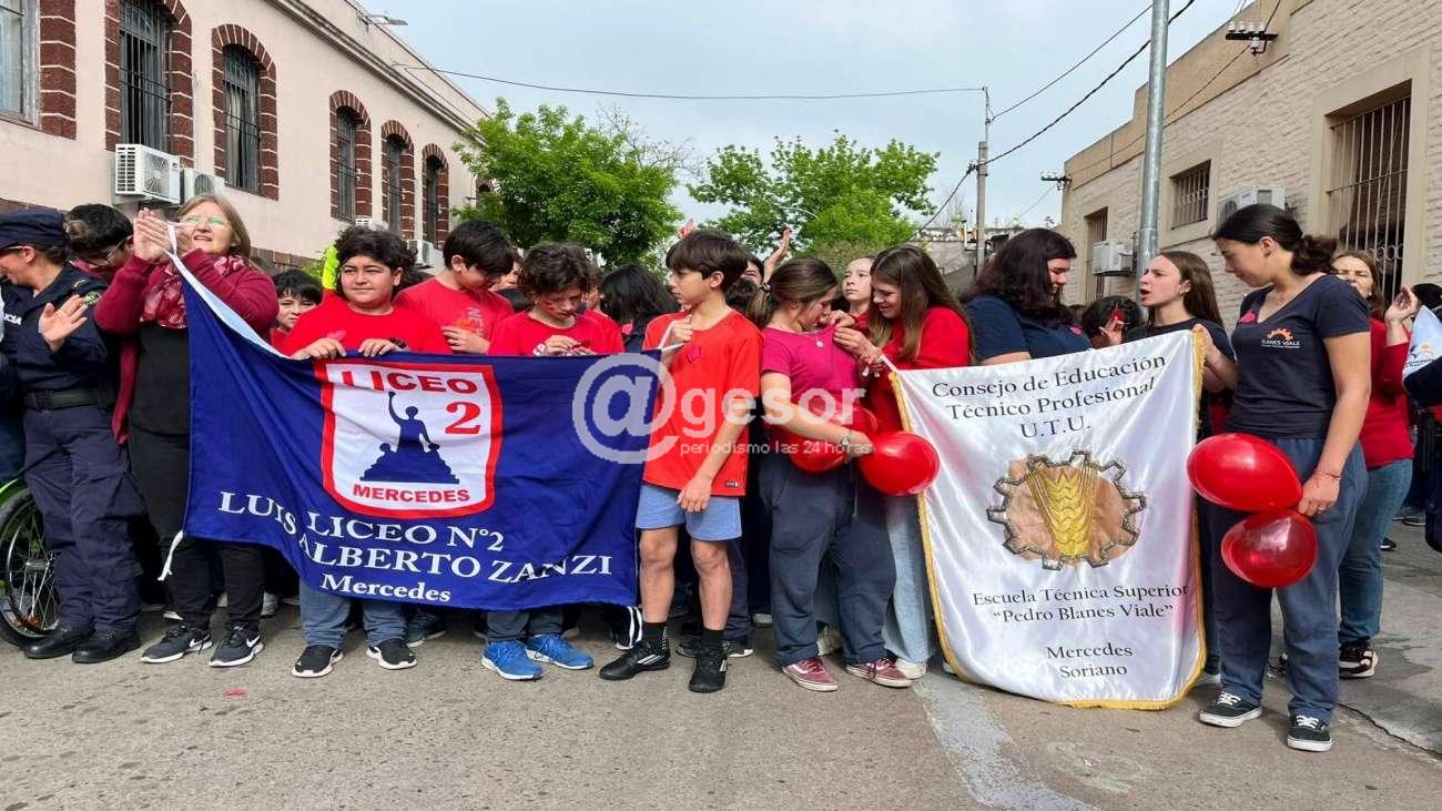 El viernes, en un clima de festejo, alegría y baile, estudiantes que pertenecen a la Escuela Técnica Superior Pedro Blanes Viale, la Escuela Técnica Washington Lockhart y el Liceo N.º 2 Luis Alberto Zanzi de Mercedes, además de público en general, recorrieron las calles de la ciudad en una caminata por el corazón.