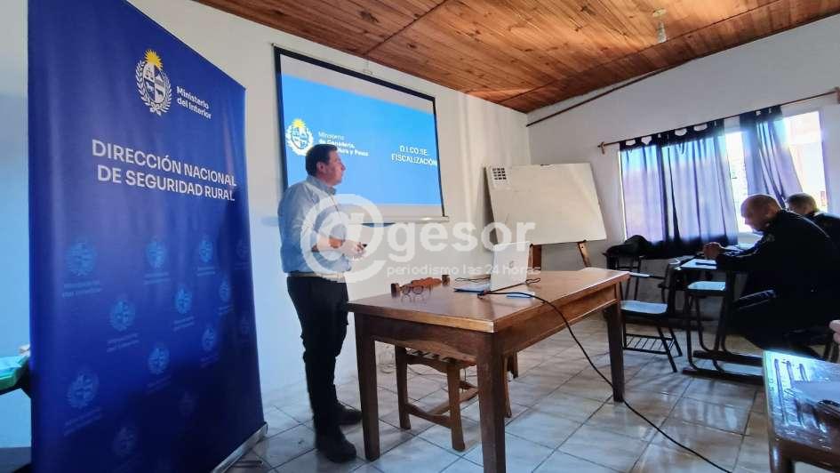 Durante la jornada se abordaron temas vinculados al trabajo operativo en el medio rural, como animales sueltos, identificación ganadera, control forestal, caza furtiva, recursos renovables y áreas protegidas, con la participación de expositores del Ministerio de Ganadería, Agricultura y Pesca (MGAP).