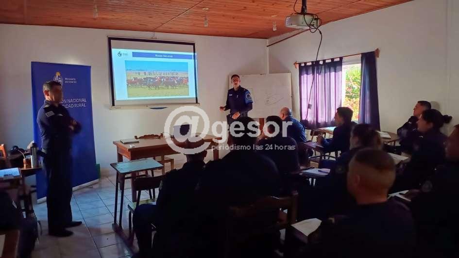 Asimismo, representantes de la Dirección Nacional de Seguridad Rural desarrollaron contenidos sobre patrullaje, inspección y control de establecimientos, ferias y haciendas, así como procedimientos de fiscalización de ganado vacuno, equino, ovino, porcino y caprino, y el correcto manejo de registros y documentación.